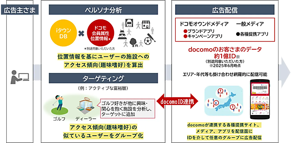 TPADは、全国のスポットデータと、エリアマーケティング事業のドコモ・インサイトマーケティング(DIM)が保有するドコモ顧客の約1億IDのペルソナ(顧客像)を通じて趣味・嗜好や行動特性を把握し、似た行動傾向のグループに配信する「docomo Ad Network」上でターゲティング広告を配信する。サービス基盤のLOGIOは、SIerのジェーエムエーシステムズ(JMAS)と、位置情報SNSやライフスタイルメディア開発のピース企画が共同開発した。