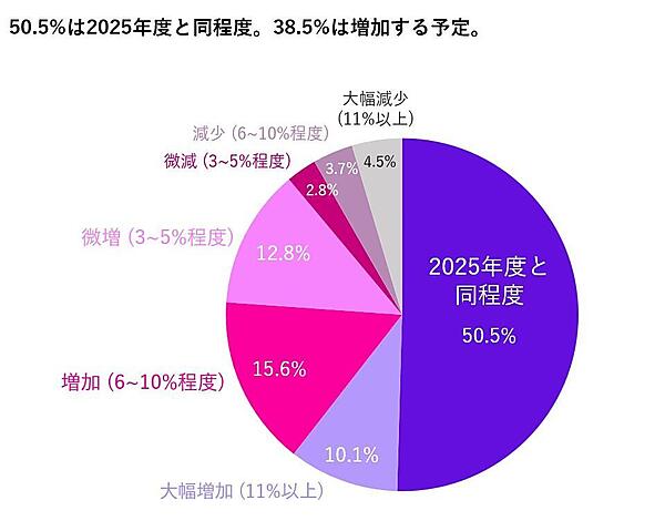 2026年度の広告・マーケティング予算は「増加する」が38.5%