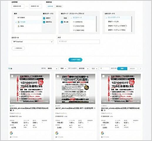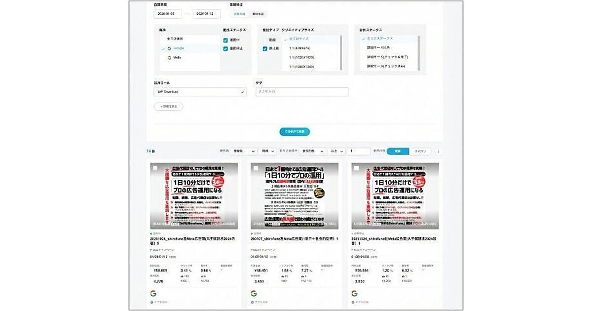 広告運用ツール開発・販売のShirofune(シロフネ)は、同社の同ツール「Shirofune」のAI(人工知能)によるクリエイティブ改善ツール「I'm Creative(アイムクリエイティブ)」が「Google広告」の「P-maxキャンペーン」のアセット(クリエイティブ素材)別実績取得に対応した、と1月20日発表した。P-maxで使われている画像・動画のパフォーマンスが個別に取得・分析可能になった。