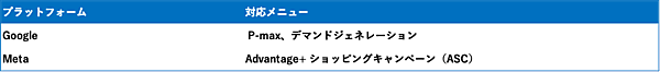 I'm Creativeはこれまで、Googleの主なサービスに最適な広告を配信する「デマンドジェネレーションキャンペーン」と、Metaの広告配信自動化「Advantage+ショッピングキャンペーン(ASC)」でアセット別のクリエイティブ分析・改善提案ができた。今回P-maxキャンペーンにも対応したことで、AIでの主要な自動化広告配信メニューでアセット別分析・改善提案が実現したことになる。