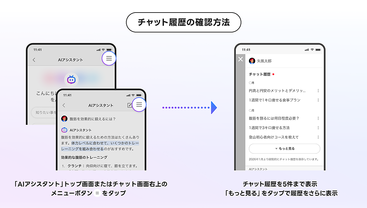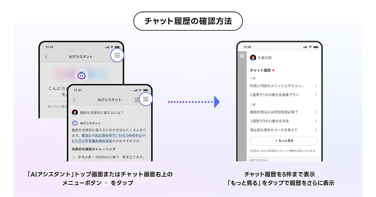 LINEヤフーは、同社が運営する検索サービス「Yahoo!検索」のAI(人工知能)機能「AIアシスタント」に、チャット履歴の閲覧機能を追加した、と1月20日発表した。AIアシスタントはAIとのチャットを通じて情報を深く理解できる機能。履歴の閲覧で過去の質問・やり取りが容易に振り返られる。過去のチャットの続きからやり取りを再開することも可能。