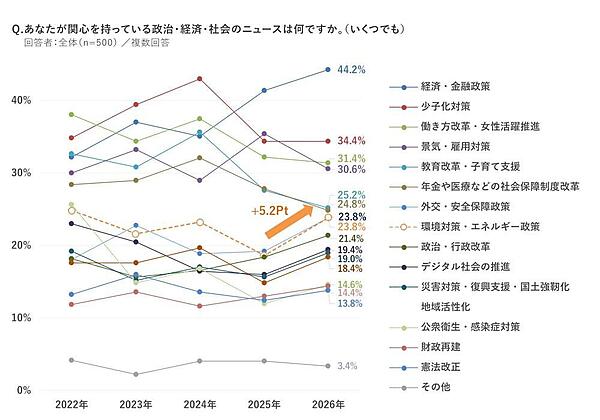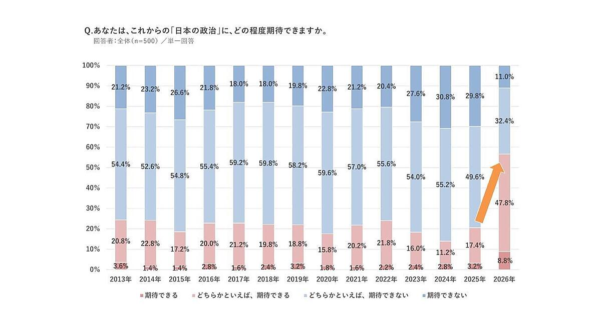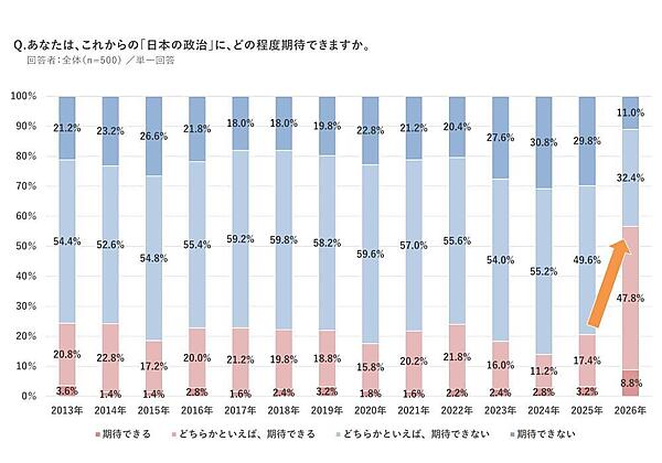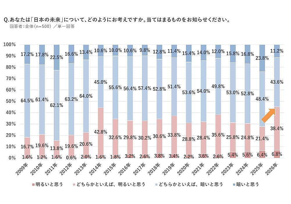 2026年でガラリと変化、「日本の政治に期待」「未来は明るい」が前年から大幅増