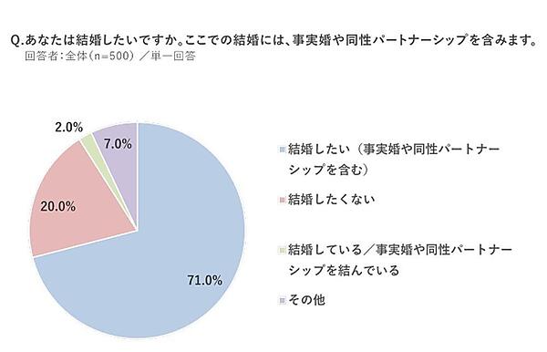 また「結婚」については、「結婚したい」が71.0%、そのうち「子どもが欲しい」とした人は77.8%だった。