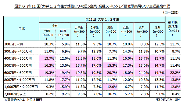 リスクモンスターは、「大学1、2年生が就職したいと思う企業・業種ランキング」を発表した。全国の大学1、2年生の男女600名が回答している。なお、本調査は今回で第11回となる。