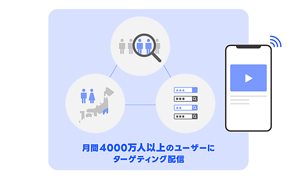 同インストリーム広告は、パソコン、スマートフォンのほかインターネット接続機能があるコネクテッドTVにも配信。民放公式テレビ番組配信「TVer(ティーバー)」や「ABEMA」といった主要な動画配信サービスに展開でき、商品特性に合わせて動画の長さを選べる。LINEヤフーが持つターゲティング設定を活用して月間4000万人以上のユーザーへのアプローチが可能になる。
