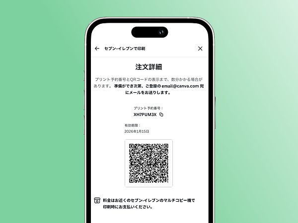 この機能によってCanvaから直接、マルチコピー機のネットプリントへの登録が可能になった。印刷発注用のQRコードかプリント予約番号が生成でき、作成したデザインファイルを印刷する際の手間が省ける。これまでは作成したデザインをPDFにし、それを保存したUSBメモリを用意するか、印刷サービスのウェブサイトからファイルをアップロードする必要があった。
