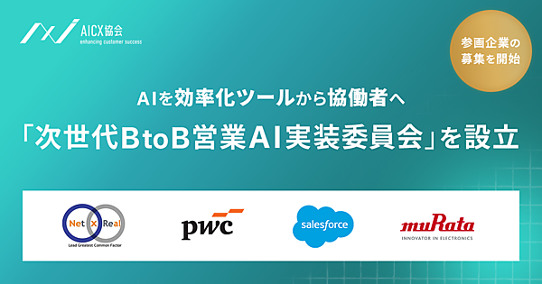 生成AI(人工知能)やAIエージェントの実装による産業と顧客体験(CX)の変革を推進する業界団体の一般社団法人AICX協会は、「次世代BtoB営業AI実装委員会」を設立し、第1期の参画企業の募集を始めた、と2月6日発表した。BtoB(企業間取引)営業を労働集約型から知的共創職へ転換することが目的。中でも大企業のBtoBエンタープライズフィールドセールスを対象にする。
