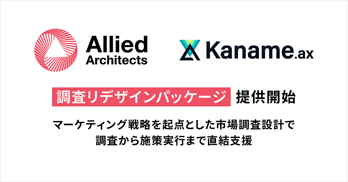 マーケティング支援事業のアライドアーキテクツは、従来の市場調査では実現が難しかった、市場調査の設計から施策の実行まで一気通貫で支援する「調査リデザインパッケージ」の提供を始めたと2月10日に発表した。マーケティング実務経験を持つデータチームが、VOC(顧客の声)データと同社独自のフレームワークを組み合わせ、調査を起点としてターゲット定義から具体的な施策実行までを支援する。