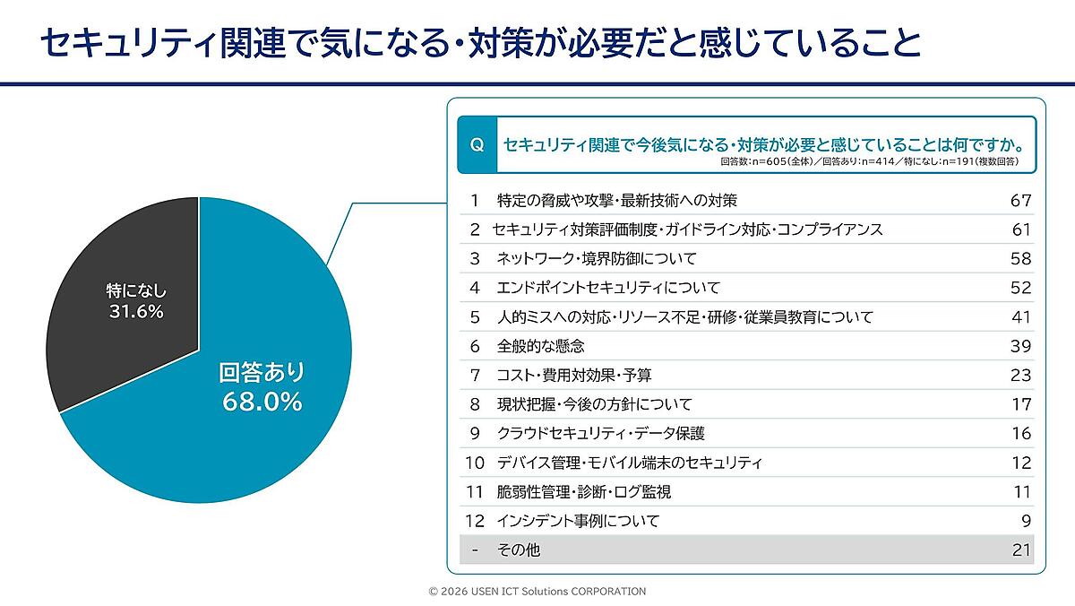 USEN&U-NEXT GROUPのUSEN ICT Solutionsは、「企業におけるセキュリティ対策」に関する調査結果を発表した。全国の情報システム担当者1932人が回答している。