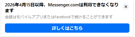 Metaは、ブラウザ専用サイト「Messenger.com」を通じたメッセージングサービスの提供を、2026年4月15日をもって終了する。 同時に、これまで提供してきたPC向けの「Messengerデスクトップアプリ」も利用不能となる。今後はFacebook本体のWebサイト、またはモバイルアプリへの移行が必須となる。
