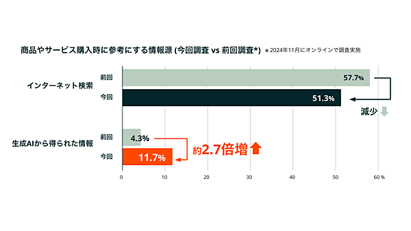 BtoB商品・サービスの検討時に「生成AIを参考にする」は約2.7倍に増加