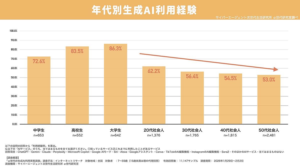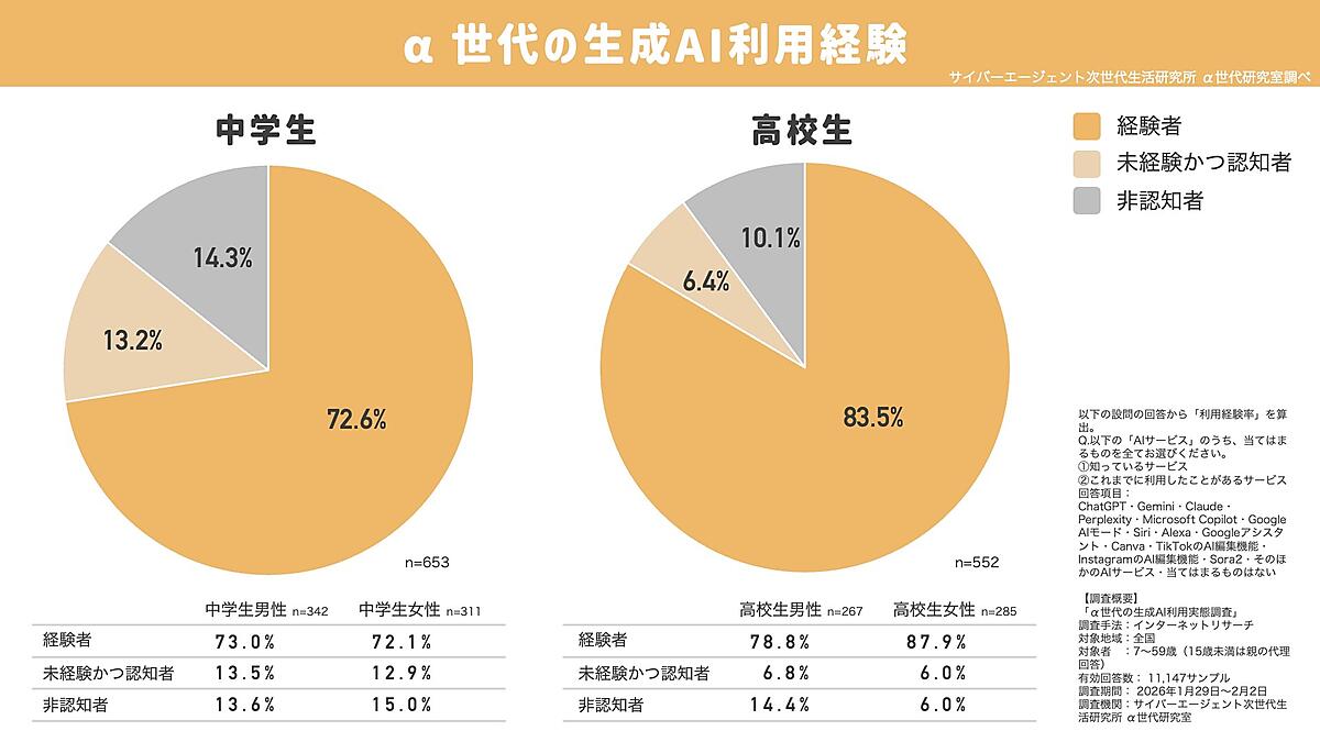 α世代は「AI世代」? 女子高生の生成AI利用率は驚異の87.9%