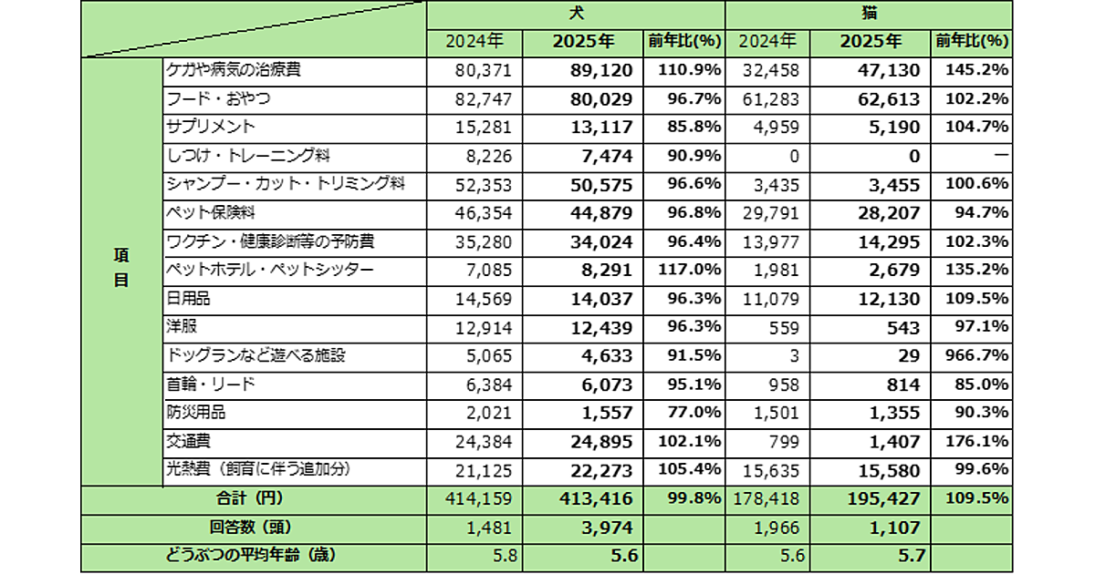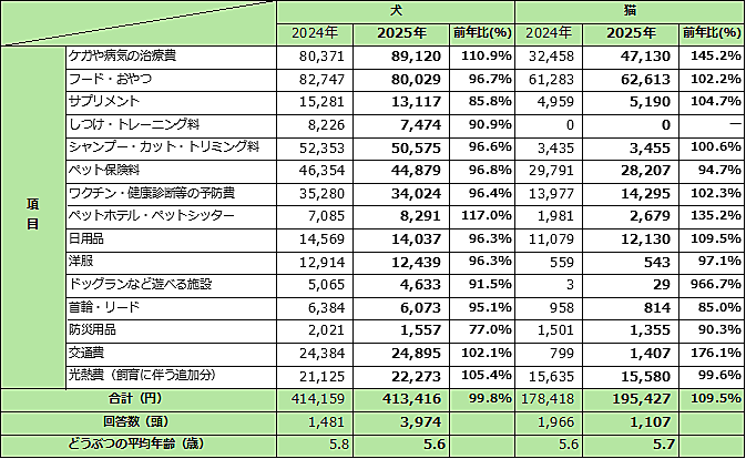 アニコム損害保険は、「2025年の1年間にペットにかけた年間支出額」に関する調査を実施した。同社のペット保険「どうぶつ健保」の契約者5,494名を対象に調査している。