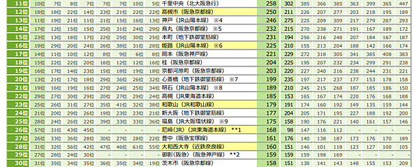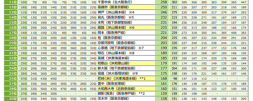 【関西】梅田・西宮北口・神戸三宮・なんば・天王寺が5年連続TOP5