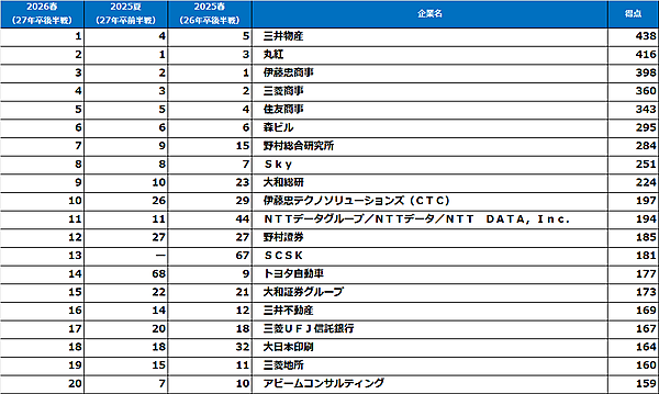 ダイヤモンド・ヒューマンリソースは、2026年春の「就職先人気企業ランキング調査」を実施した。2027年3月卒業(修了)予定の大学生・大学院生5,520名を対象に調べている。本調査は、1978年の調査開始以来49回目の実施となる。