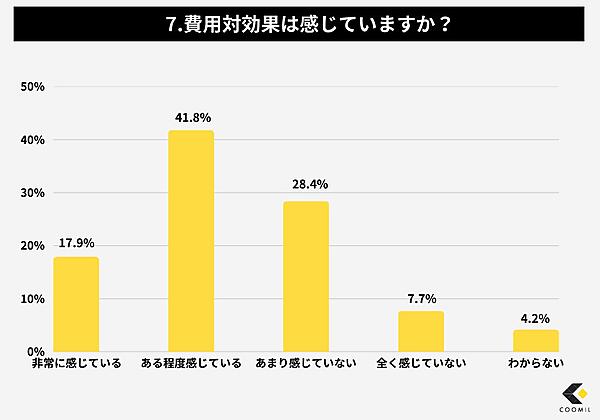 「リニューアルに対する費用対効果」を聞くと、「非常に感じている」17.9%、「ある程度感じている」41.8%と過半数が認めているものの「あまり感じていない」28.4%、「まったく感じていない」7.7%、「わからない」4.2%と否定的な声も多かった。