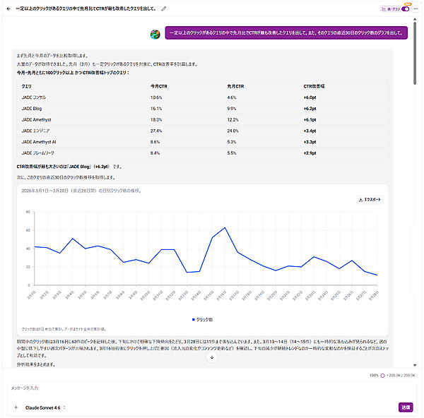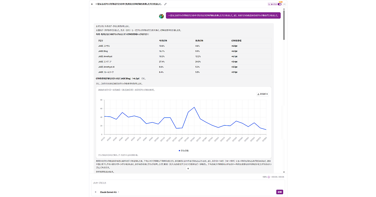 ウェブコンサルティング・SaaS開発事業のJADE(ジェイド)は、同社が展開するSEO(検索エンジン最適化)分析ツール「Amethyst(アメジスト)」で、データの分析や各種の操作がチャット形式でできるAI機能「Amethyst AI」の正式提供を3月26日に始めた、と4月1日発表した。分析作業の負担を軽減するAIエージェント。専用の画面を操作する必要がなくなる。