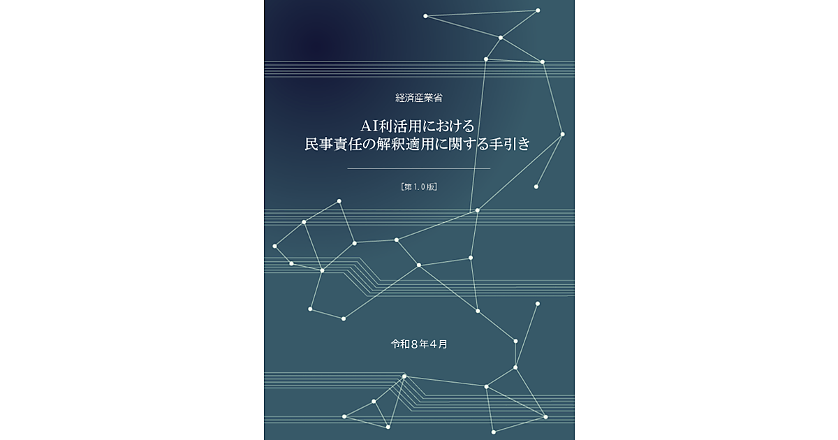 経済産業省は4月9日、AIサービスの利用時に損害が発生した場合の民事責任の考え方を整理した「AI利活用における民事責任の解釈適用に関する手引き」を公表した。手引は、AIを用いたサービスやシステムの事故の想定事例を題材にして検討。AI利用の形態に応じた2つの類型(「補助/支援型AI」、「依拠/代替型AI」)に整理し、当事者の責任の判断に参考になるようにした。