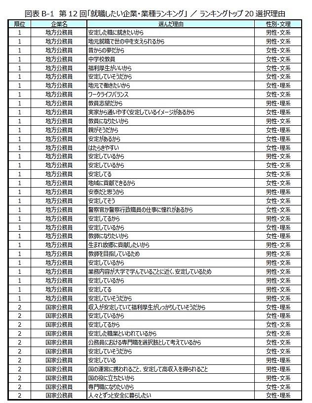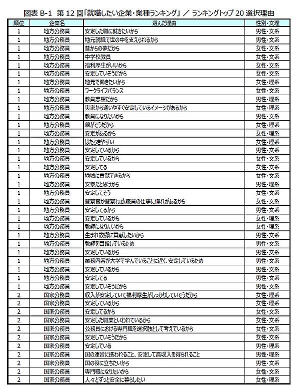 1位は「地方公務員」で安定志向が継続