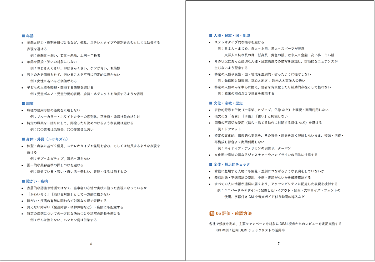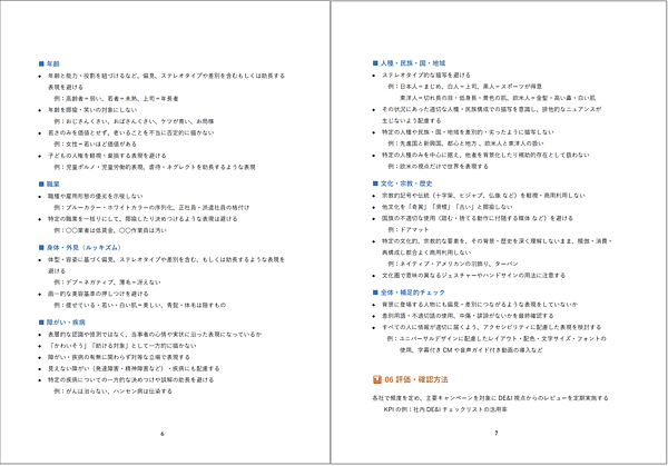 近年、無意識の偏見やステレオタイプな表現が企業への不信感やブランドの毀損につながるケースが見られる一方、生活者は共感できる企業を支持する傾向を強めている。こうした状況を踏まえ、Diversity(多様性) Equity(公平性) Inclusion(包摂性)の視点から本ガイドラインを策定した。