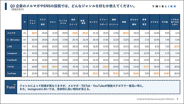 メルマガとSNSでは期待する情報の種類が異なり、受け取るきっかけもメディアによって異なる傾向だった。メルマガと「LINE」は「セール・クーポン情報」や「会員・登録者限定の情報」が重視される傾向にある一方、「Instagram」「X」「TikTok」などのSNSは「新製品・サービスの新着ニュース」や「流行りの投稿」などトレンド・速報性への期待が強かった。調査結果は、マーケターがチャネルごとに配信コンテンツを使い分ける必要性を示している。