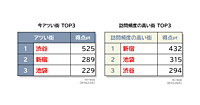 東京の好きな街、訪問頻度が高い街をランキング形式で発表。