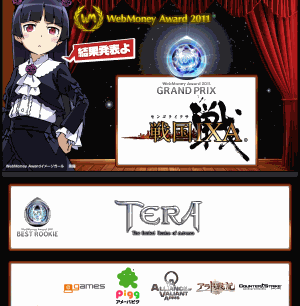 電子マネー「WebMoney(ウェブマネー)」を発行するウェブマネー(本社東京都、吉田眞市社長)は1月19日、オンラインゲームの祭典「WebMoney Award(ウェブマネーアワード)2011」を東京・時事通信ホールで開催、スクウェア・エニックスの「戦国IXA」がグランプリを獲得した。