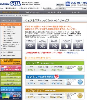 - 利用サービス:ウェブホスティングパッケージサービス ビジネスプラン、ショップサポート(ショッピングカート)、GOL検索エンジン/SEOツールサービス