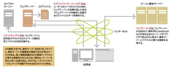 では、いくつかの項目に分けて、ログファイル型、ウェブビーコン型、パケットキャプチャ型の3つの特徴を探っていこう。