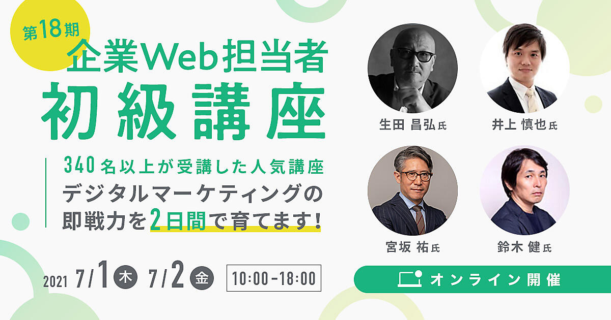 デジタルマーケティングの即戦力を2日間で育てます! 第18期「企業Web担当者 初級講座」7/1~7/2【2021年7月度】
