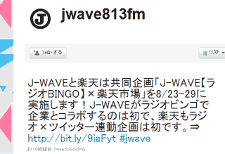 ・J-WAVE 81.3FMと楽天市場がコラボレーション 携帯電話で参加するビンゴゲーム --「J-WAVE 【ラジオBINGO】×楽天市場」開催--(楽天株式会社ニュースリリース)