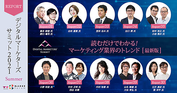 今回は、2021年8月19日~20日にWeb担当者Forumが開催した「デジタルマーケターズサミット 2021 Summer」から、マーケティング業界のトレンドがわかる10本の講演資料(全87ページ)を用意した。
