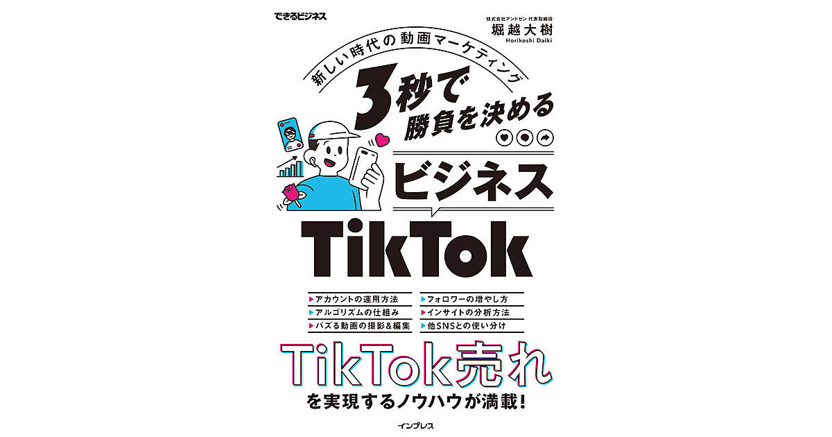 本書は「これからTikTokを始める人」「使ってはいるけど効果が感じられていない人」に向けて、TikTokの始め方からバズる動画を作ってアカウントを運用する方法までを解説。