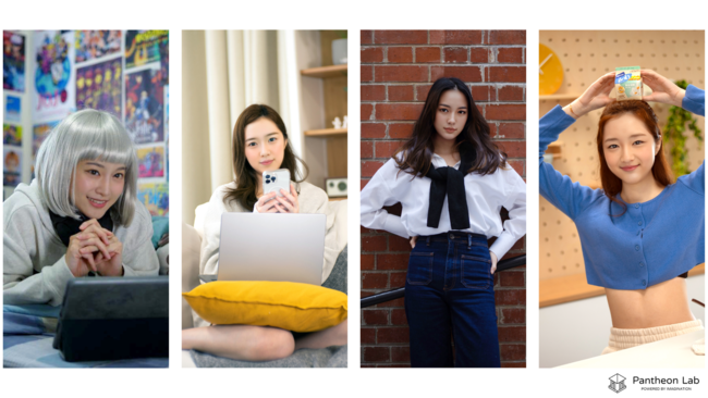 ※左から、Yuna、Hailey、Nat、Popcorn(爆谷)。バーチャル・ガールは、Pantheon Labの自社IP(自社保有の知的財産)で、当サービスで活用可能な既存のリアル型バーチャルヒューマン。