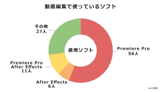 1番使われているソフトは、「Premiere Pro」という結果になりました。また、使用ソフトと月収の相関関係は見られませんでした。