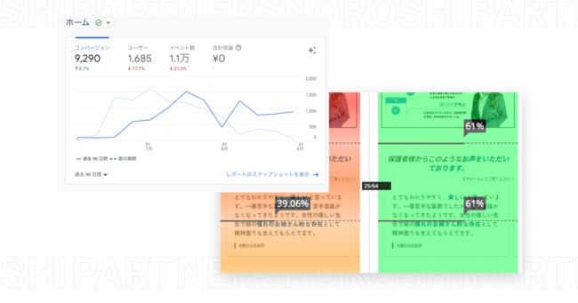これまで多くのWebサイト(LP)は、制作し納品して終わりでしたが、ビジネスを推進するWebサイト(LP)は、徹底した分析、テスト、改善が必要です。NOROSHI Partnersでは、デジタルマーケティングの視点から、制作後の継続的な運用サポートを行います。