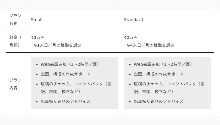 ※契約形態は準委任契約とします。また、コミュニケーションツールはSlackを前提とします。稼働工数を超過した場合は、7万円/日のタイムチャージを加算させていただきます。