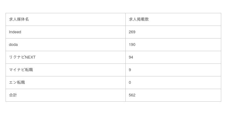 Indeedとdodaの関連求人件数が、特に多い結果となっています。