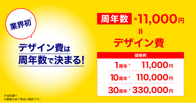 ◆1周年なら11,000円。30周年なら330,000円。