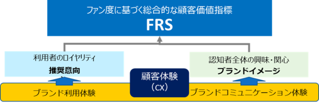 「FRS」は見えにくいCXの効果を「見える化」する指標です。CXの評価や向上をサポートするとともに、従来の顧客ロイヤリティを計測する指標では推定が困難な「商品未購入者」や「サービス未利用者」の将来の顧客化可能性を推定できる要素も含んでおり、企業の将来性を示す新しい指標となります。