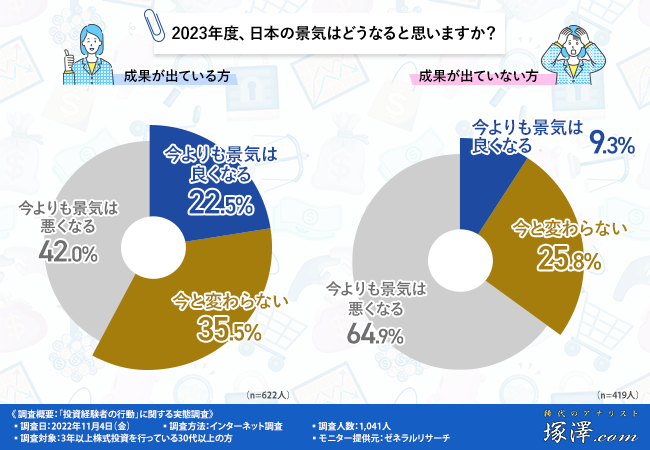 成果が出ている方に、「2023年度、日本の景気はどうなると思いますか?」と質問したところ、