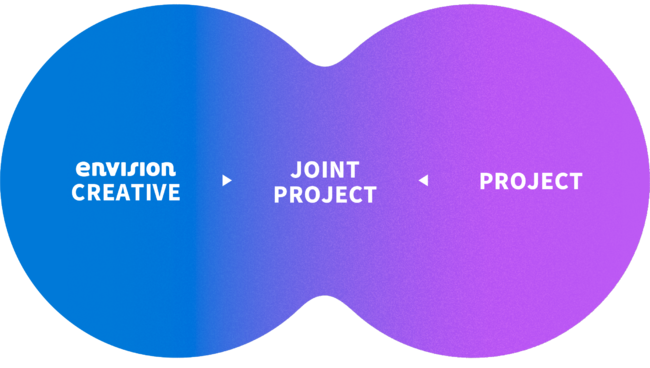 私たちエンビジョンは、パートナーの課題にエンビジョンの考えを交えてコミュニケーションやクリエイティブを展開するパートナー事業領域「envisionCREATIVE」と、社会課題に私たちのクリエイティブで向き合い自己資本で事業展開するオウンド事業領域「PROJECT」、さらにその2領域を交えたジョイント事業「JOINT PROJECT」をサービスとしています。