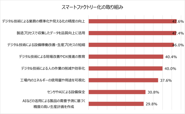 この結果から、複数の取り組みを組み合わせてスマートファクトリー化を進めている企業が多いことが分かりました。