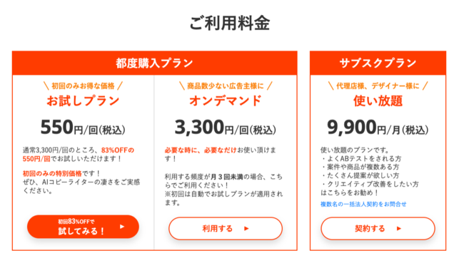 「UniCopi」は、広告業界の制作コストを劇的に改善することを目指し、できる限り低価格での設定を行いました。(2023年4月時点)