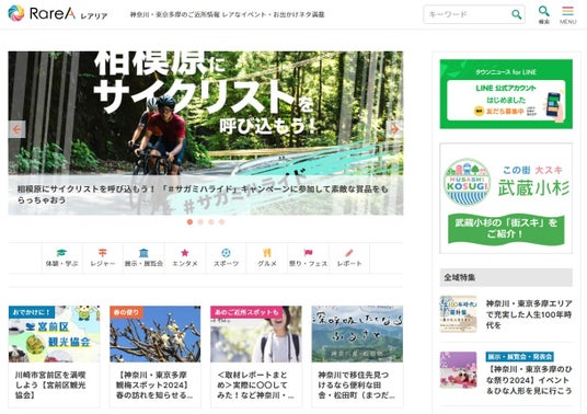 神奈川県と東京多摩周辺の地元イベントやおでかけ情報を掲載しているご近所情報サイトです。2016年の開設以降、のべ1,100万人のユーザーが利用しています。ユーザー参加型のコンテンツや自治会情報をまとめた特設ページなども展開し、地域活性化にも貢献しています。