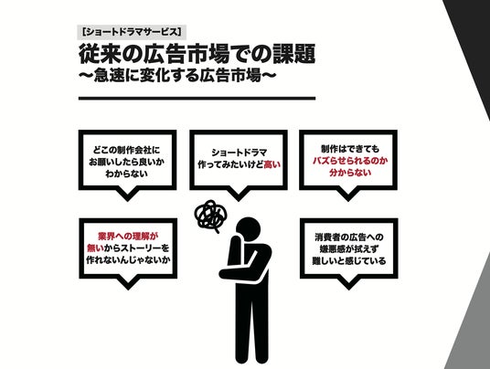 本サービスは、これらの課題を解決するために本格的なドラマとして広告を流すことでタイムパフォーマンス良く、商品・サービス・場所・企業の理念・社風等をわかりやすく視聴者に届けることができます。ドラマ動画は一般的な動画と比べて、離脱率が低く視聴完了率が高いです。また、予算に応じてカスタマイズが可能なため、伝統的なテレビドラマやCMなどと比べれば格段にコストを抑えつつ必要最低限の予算でもドラマ制作が可能です。