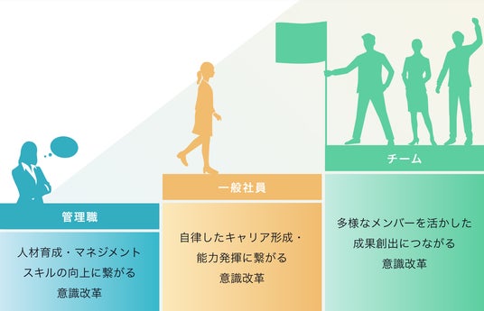 対象ごとに取り組むべきポイントを具体化し、「受講しただけ」では終わらせない仕組みを準備しています。