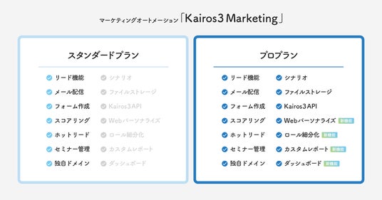 Kairos3 運用サポートプラス」の提供も開始いたします。「Kairos3 運用サポートプラス」では、「Kairos3」を自社のマーケティングと営業活動に活用してきた当社のメソッドをお客さまへ共有し、施策の立ち上げとデジタル人材の育成をサポートいたします。