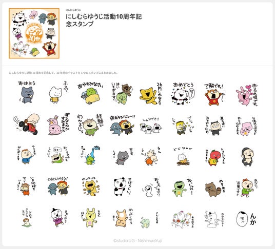 にしむらゆうじの活動10周年をスタンプで振り返る、LINEスタンプを発売します。