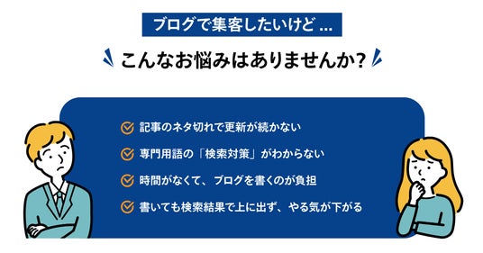 「ブログ更新が追いつかない...」「SEO対策って難しすぎる...」「専門知識がないから自信が持てない…」。WEB制作会社としてお客様と関わる中で、そんなお悩みを持つ方に多数出会ってきました。